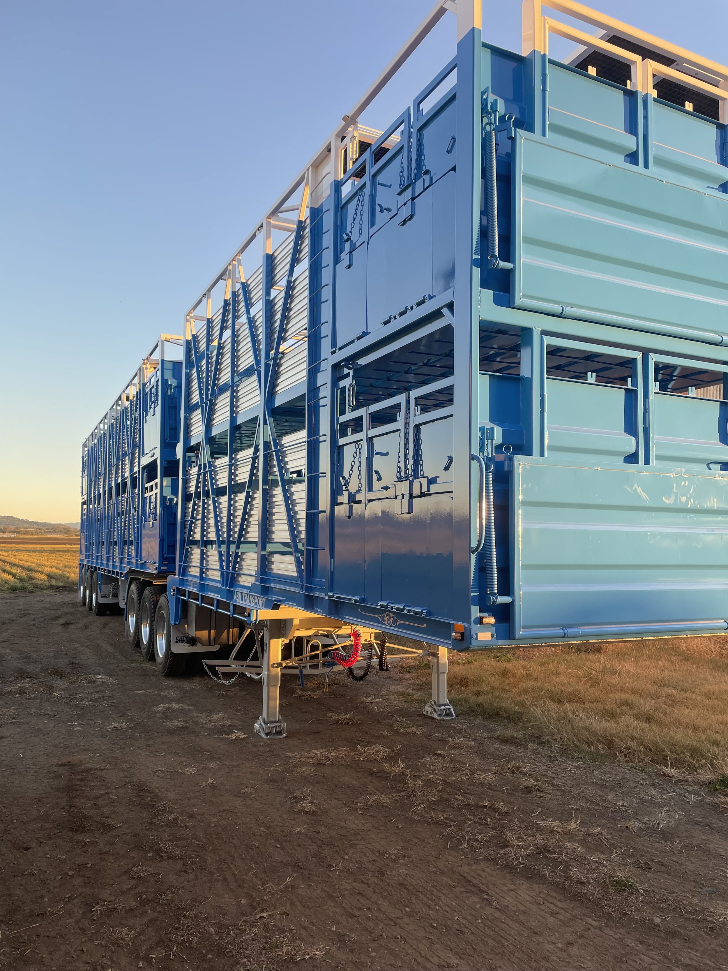 This B-Double was fitted out with ETE suspension, K-Hitch axles, Jost turntable 5W37C, Jost legs MOUDUL S 400mm, PAIR, 10 Stud Haulmax aluminium rims. With twin ramps in the B Trailer, walkthrough doors and 5ft side doors. Fibreglass grating gritted non slip Catwalks. 2 x LDR toolboxes 3ft and 4ft. 2x spare tyres.